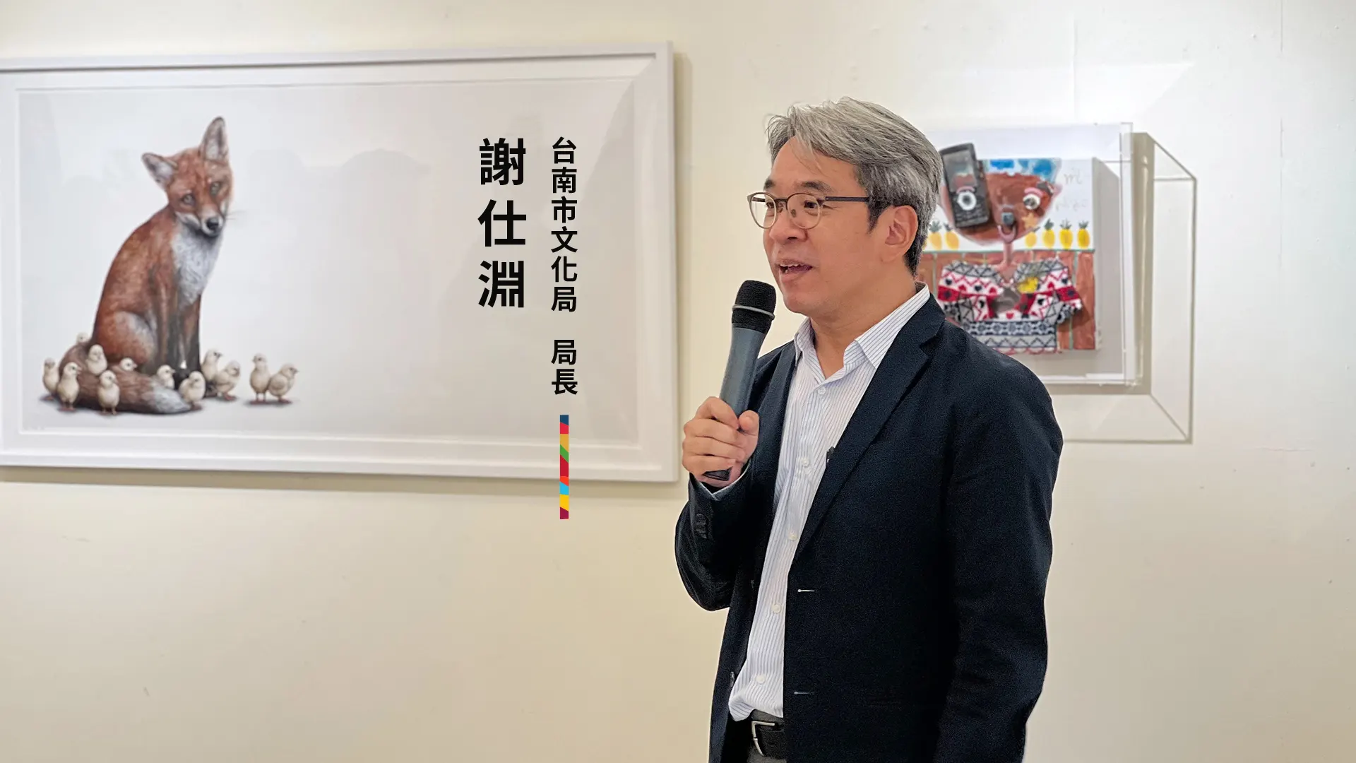 ▲ 圖左起:理善國際關懷協會 秘書長 戴衣薰 / 台南市文化局 局長 謝仕淵 / 創元藝術 執行副總監 蕭瑋儒 / 台南東門美術館 館長 卓來成